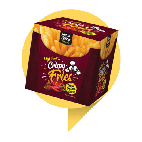 Dive into the world of potato perfection with our Crispy Fries. Available in three mouthwatering flavours, namely Original, BBQ, and Hot & Spicy, MyChef’s take pride in using real, high-quality potatoes. Our unique low-temperature vacuum deep-frying process preserves the rich aroma of French potatoes, ensuring each fry is a savoury delight for our consumers. Taste the authenticity and enjoy the satisfying crunch in every bite.