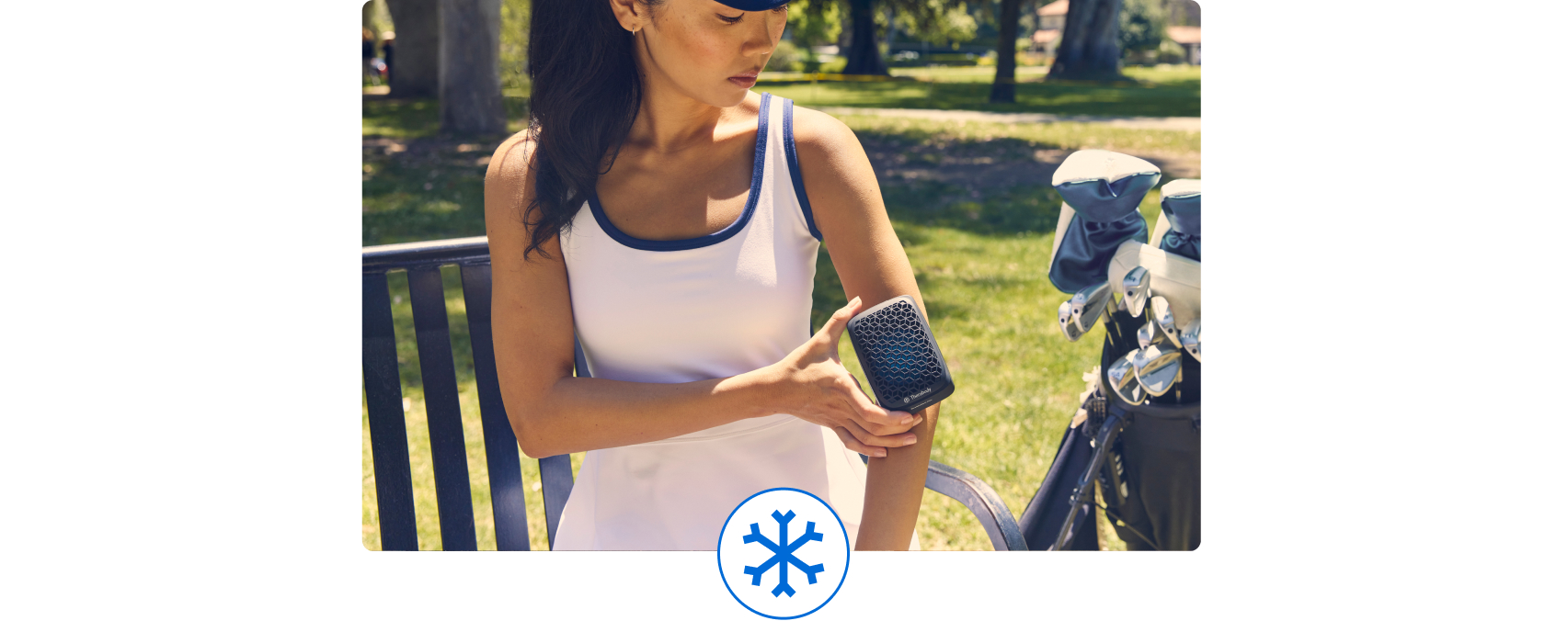 Securely rest the device on the intended treatment area, and long press either the cold or hot button to power the device on and begin treatment. If placing the device on the intended treatment area makes the cold and hot buttons out of reach, power on and choose your treatment first.