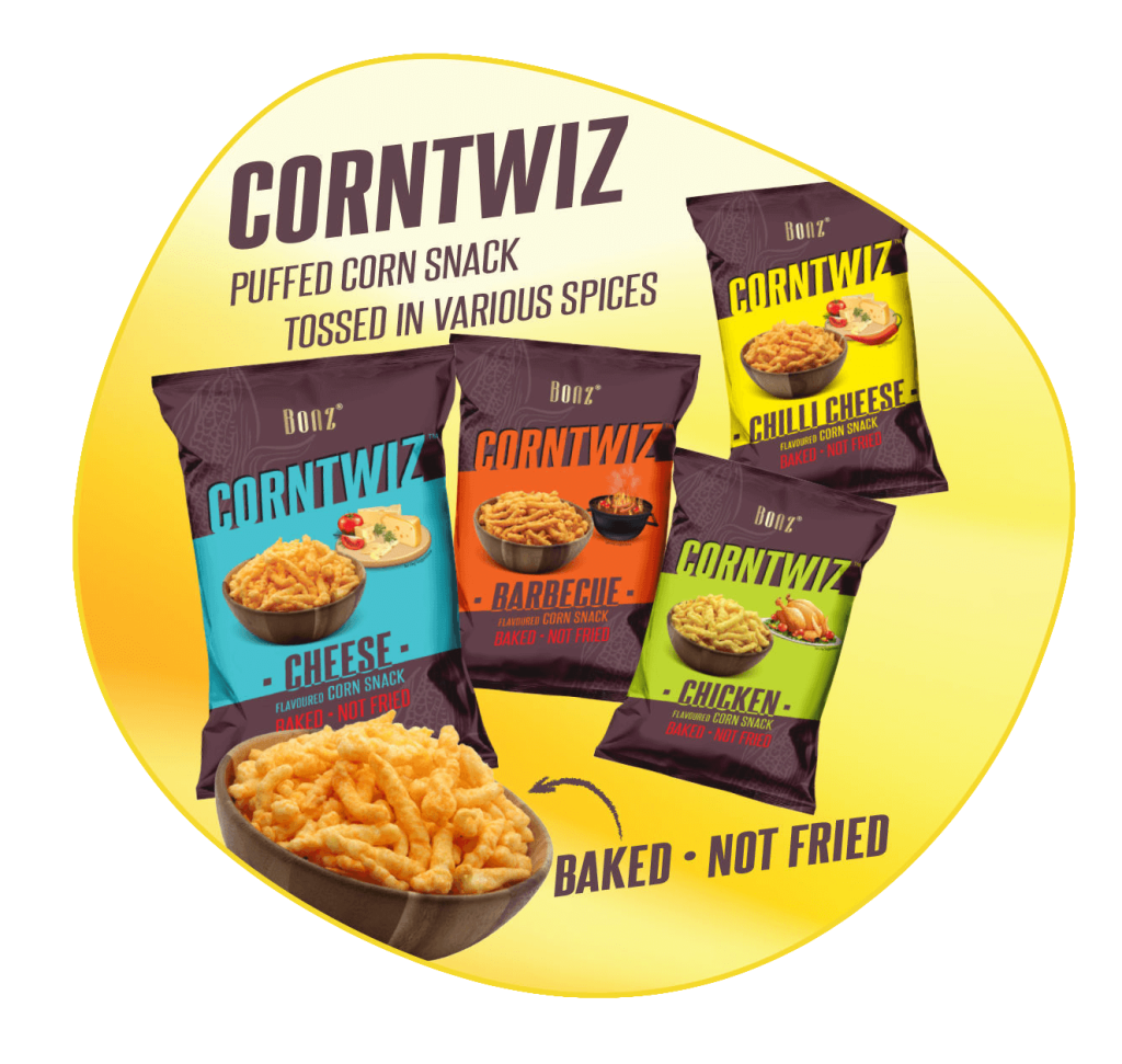 Addictive baked corn puff snack that chases away the mid-week blues, or perfect for a movie night with the family. Made using premium corn grits, baked and tossed in various spices. Once you start you cannot stop!