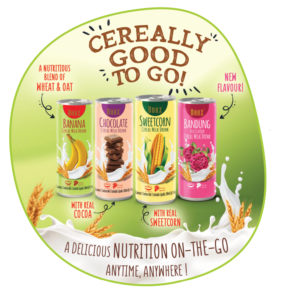 Flavours : Sweetcorn • Banana • Chocolate – Bandung (Rose) – Packing: 240m1 x 24 – 20GP Loading Capacity : 3030 cartons – Shelf Life: 24 months