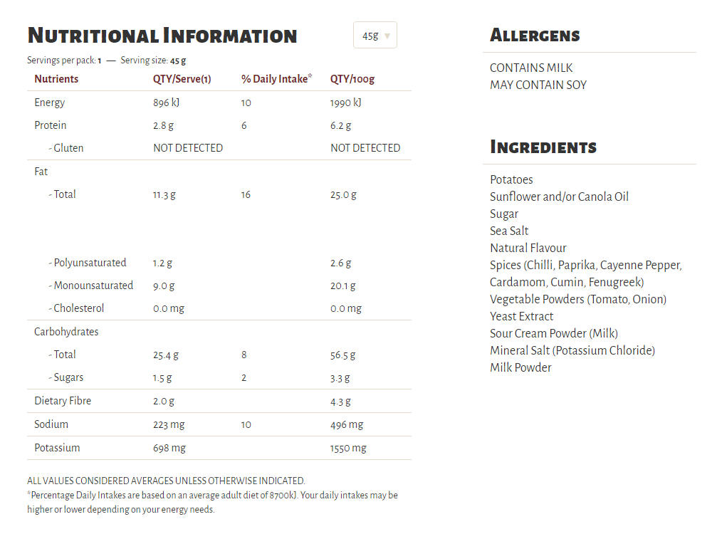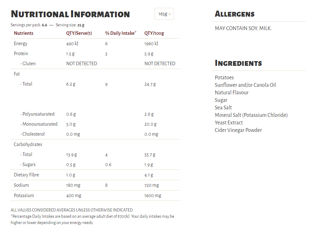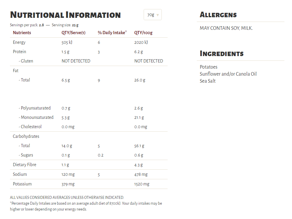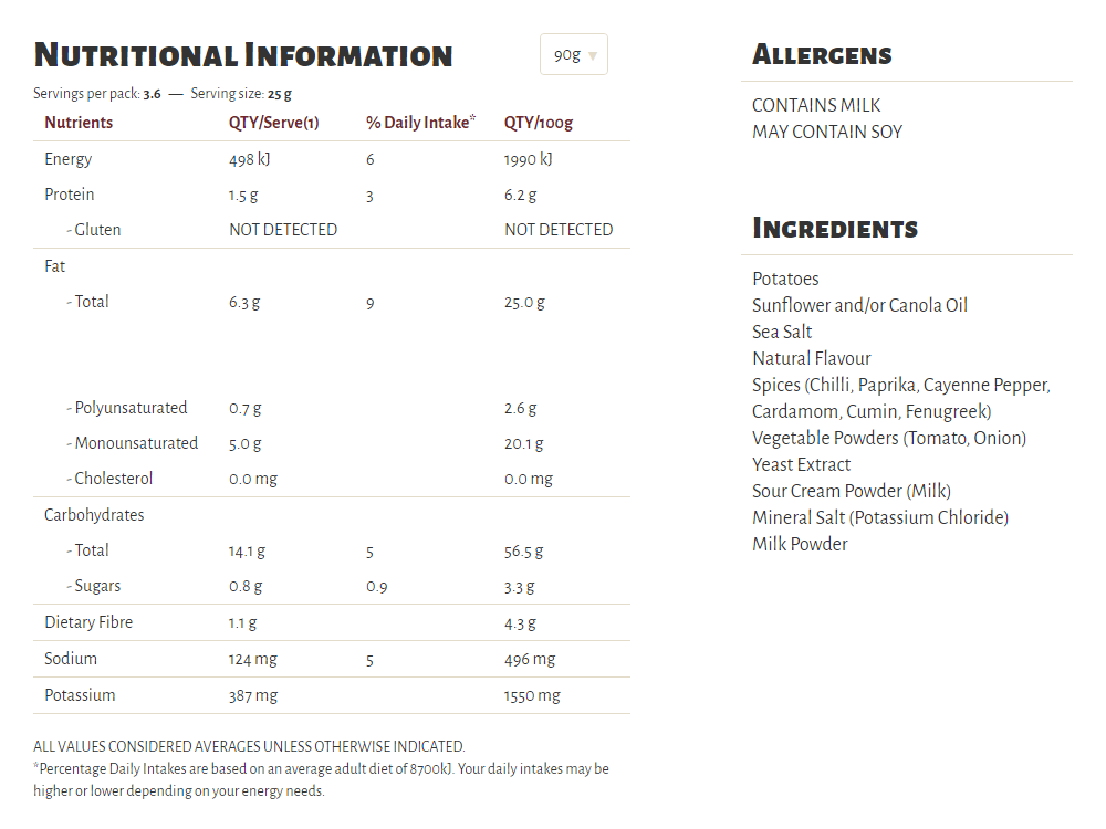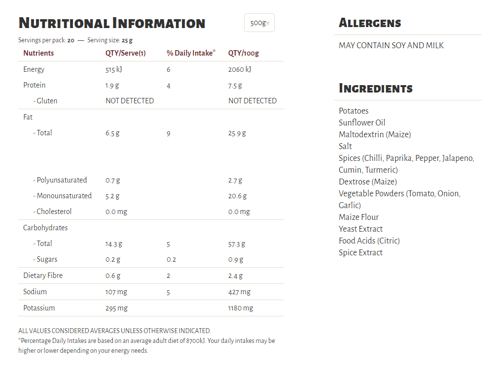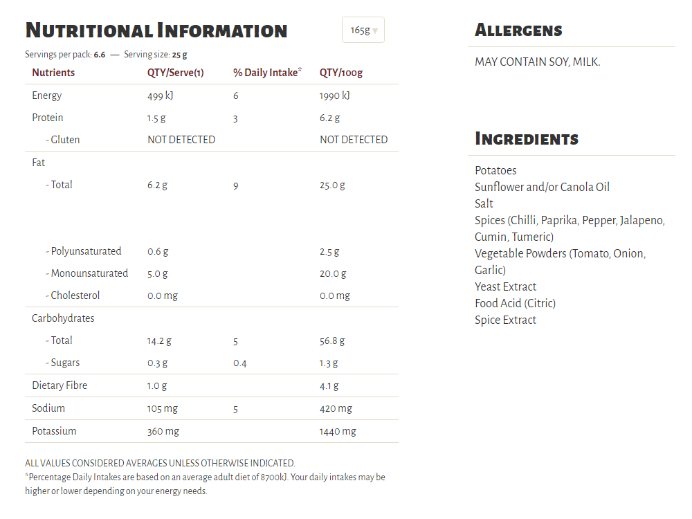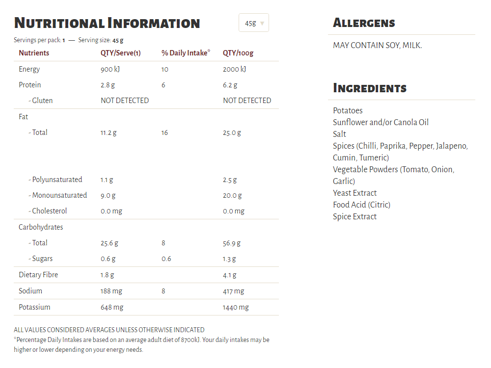 Slow cooked the unique Kettle way, our Herb & Spice flavour is a long-time favourite in our recipe collection. A well-perfected combination of sun-ripened tomatoes and our secret spices, our seasoning is a perfect topper for some very crunchy potato chips which are cooked in sunflower oil and/or canola oil, 100% natural and gluten free!