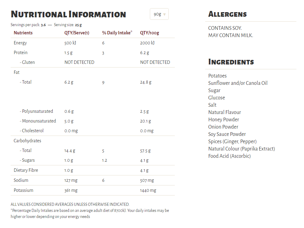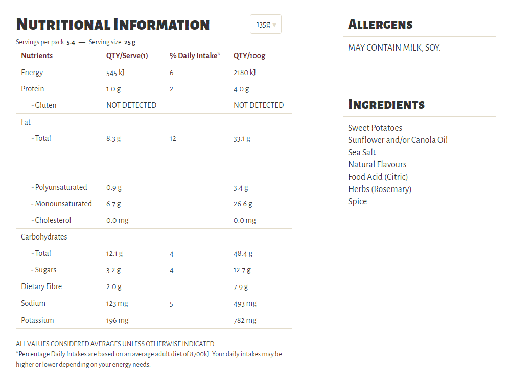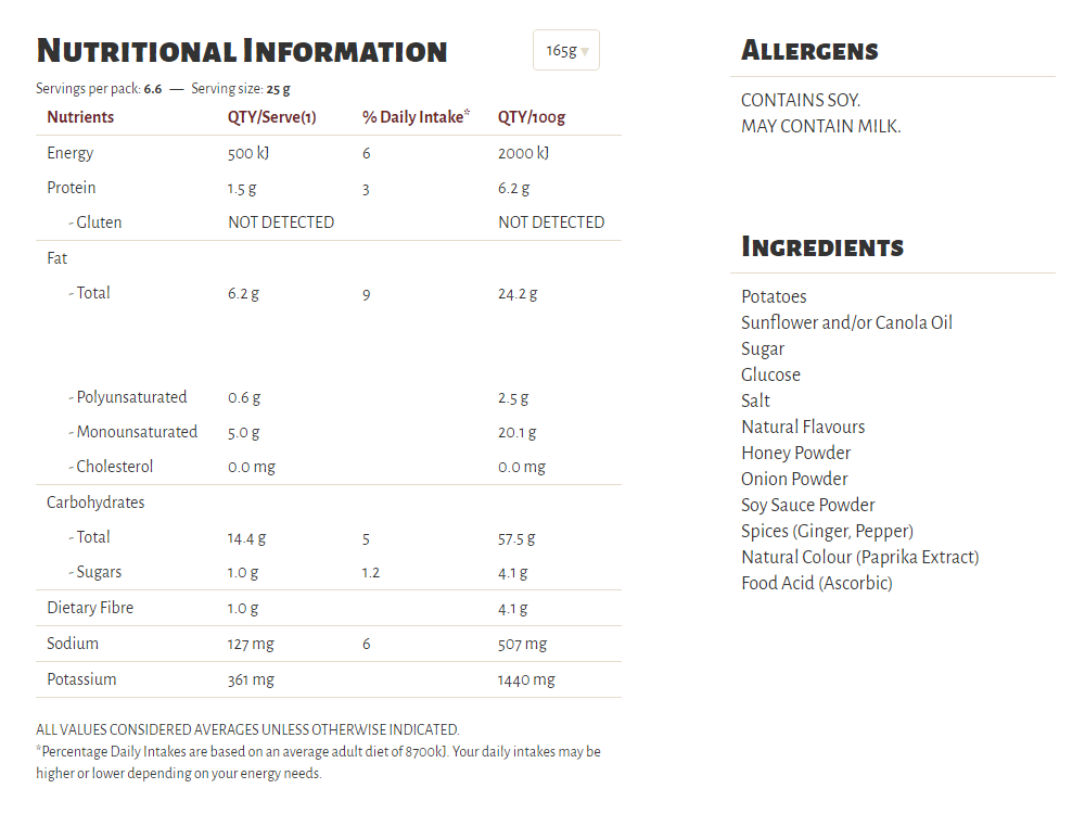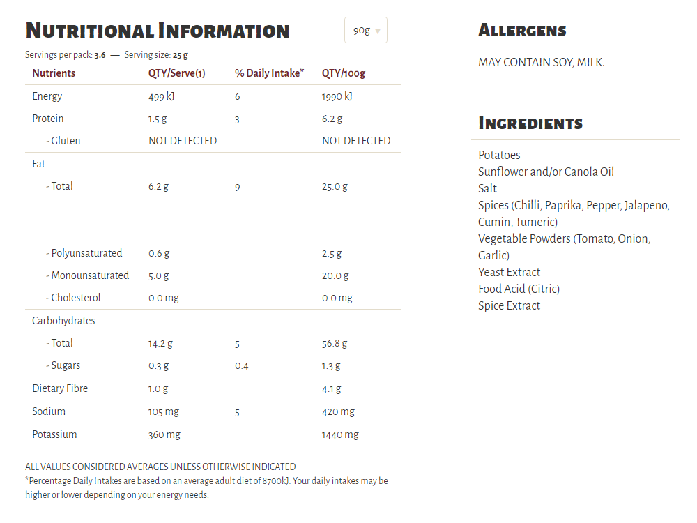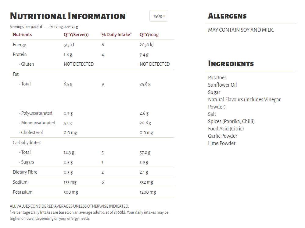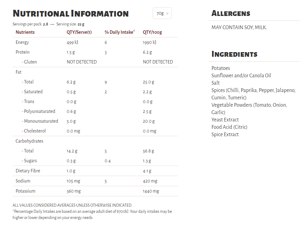 Slow cooked the unique Kettle way, our Herb & Spice flavour is a long-time favourite in our recipe collection. A well-perfected combination of sun-ripened tomatoes and our secret spices, our seasoning is a perfect topper for some very crunchy potato chips which are cooked in sunflower oil and/or canola oil, 100% natural and gluten free!