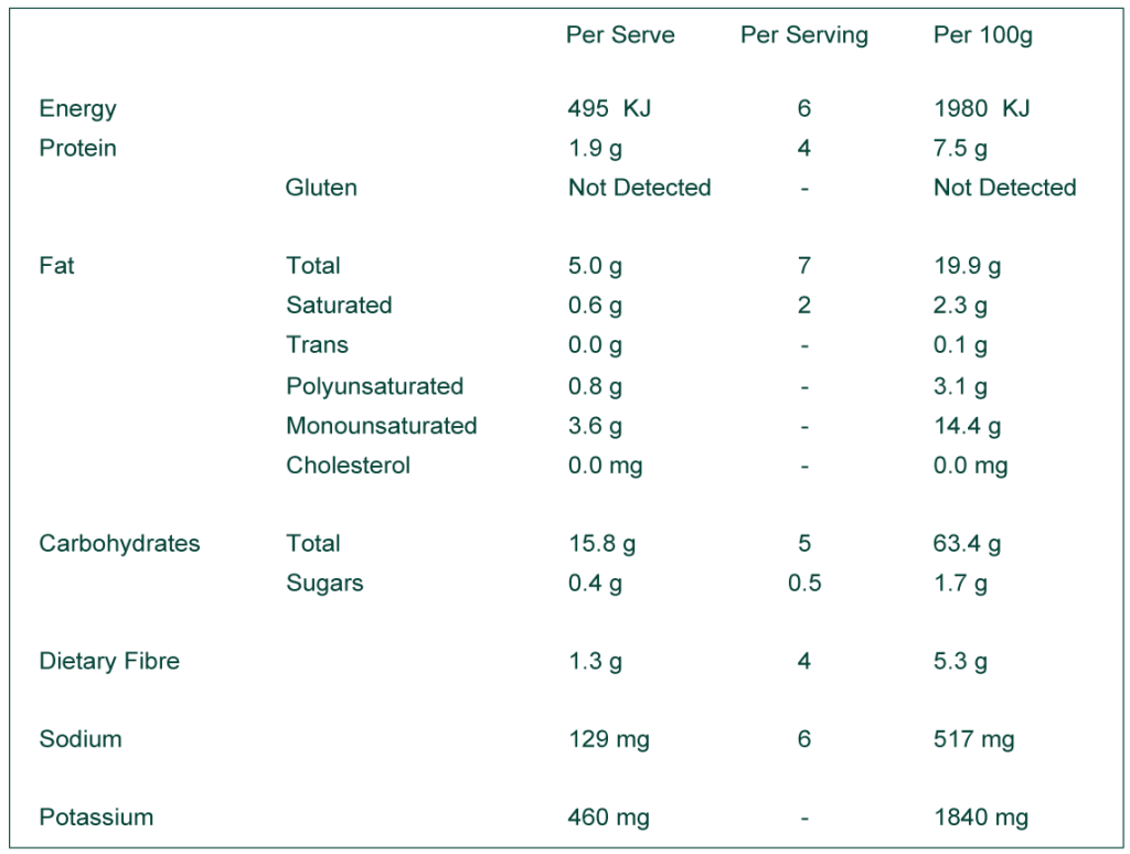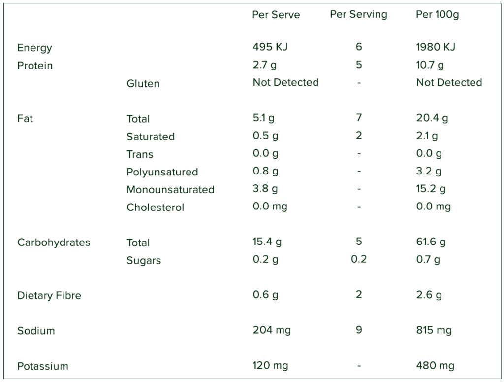 *Percentage Daily Intakes are based on an average adult diet of 8700kJ. Your daily intakes may be higher or lower depending on your energy needs.
